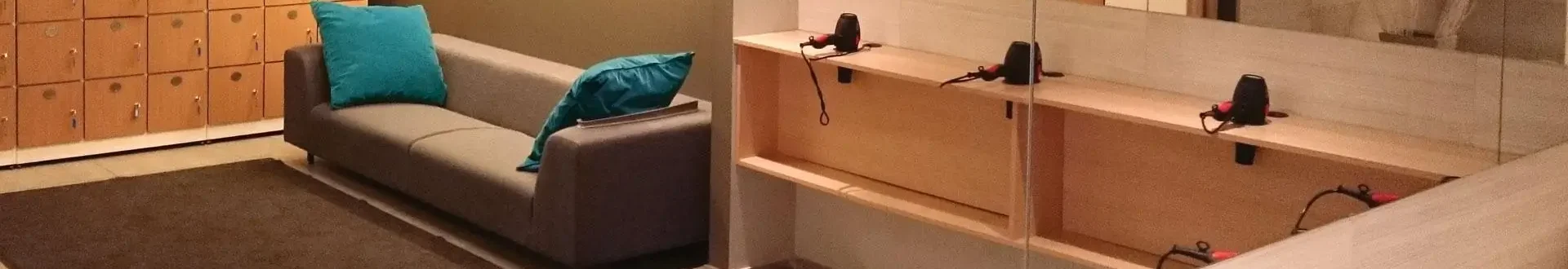 Niezbędne w każdym obiekcie sportowym. Proste w formie, ze zintegrowanym lustrem oraz otworem na umieszczenie suszarki. Bogata oferta kolorystyczna pozwala na dopasowanie do pozostałych elementów przestrzeni.