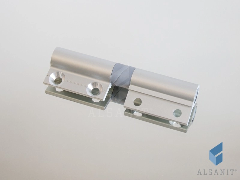 - zawias aluminiowy z poliamidową wkładką, montowany do wąskiej krawędzi płyty, samodomykacz grawitacyjny -2 sztuki