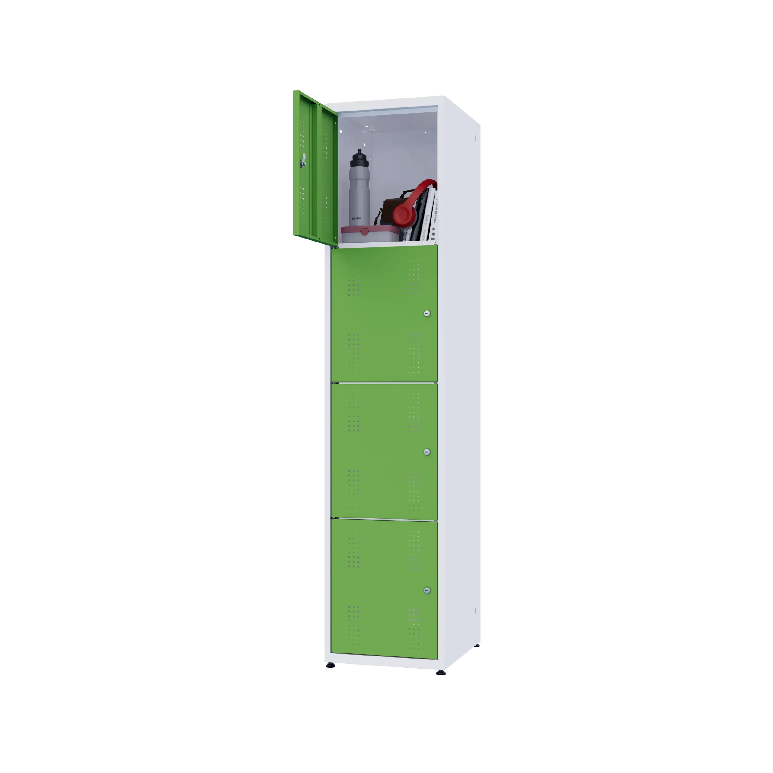Metalowe szafki są wykonane z wysokiej jakości blach stalowych pokrytych odporną na zarysowania powłoką lakierniczą. Nasze szafki można skonfigurować na wiele różnych sposobów wybierając według uznania dekory, wyposażenie i funkcjonalności.